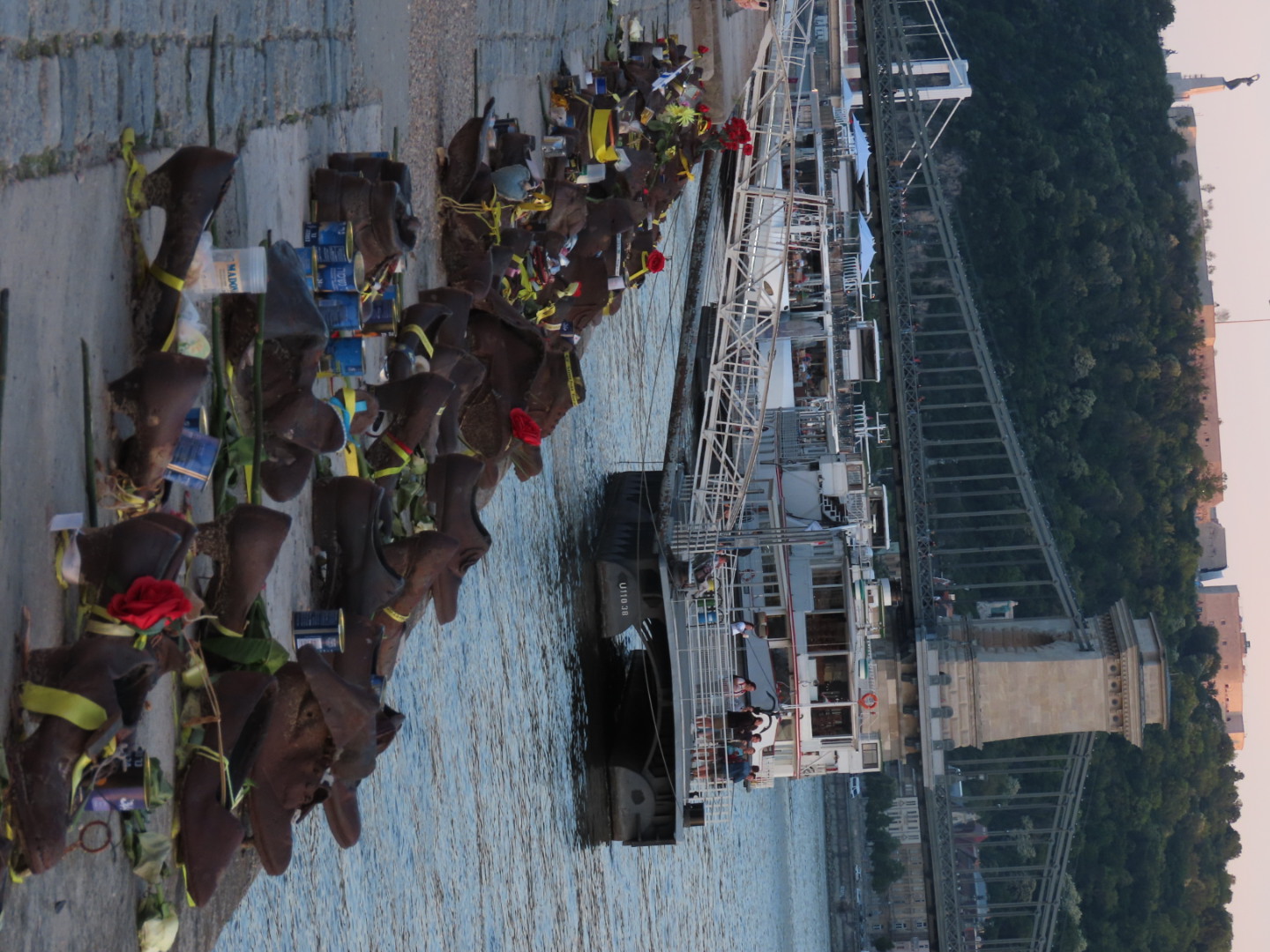 We stroll to the promenade by the river where the holocaust memorial- Shoes on the Danube Bank is. The brilliance of this poignant memorial lies in its simplicity. Cast iron shoes, of men, women and children point, a little accusingly perhaps, at the river which swallowed the Jews shot here after being made to take off their shoes. They are a moving reminder of the horrors meted out during the Second World War. The sun sets in a fiery orb, radiating light like the star it is, between the spires of a church across the river.