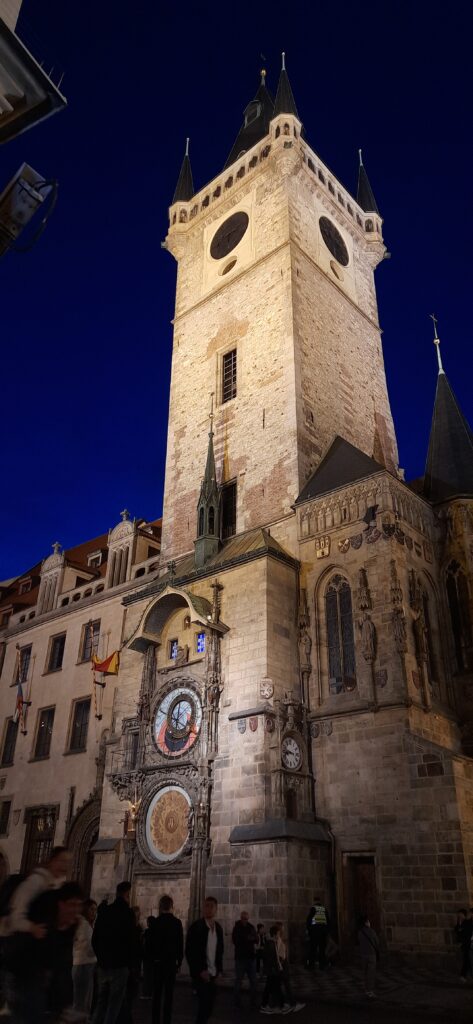 Walk to Old Town Square, the centre of gravity in Old Prague. Dominated by the twin albeit not identical towers of the Church of Our Lady before Tyn which date back to the 14th century, with the Jan Hus Memorial in the middle of the square. Prague’s iconic astronomical clock on the Old Townhall building marks the other side of the square but the clock faces a side like it wants all the attention to itself, and it gets it in hordes with crowds waiting for the hourly show of the apostles and a skeleton parading through the tiny windows. So, there is ample opportunity to see them. But the real beauty is the 14th century intricate three-piece clock.