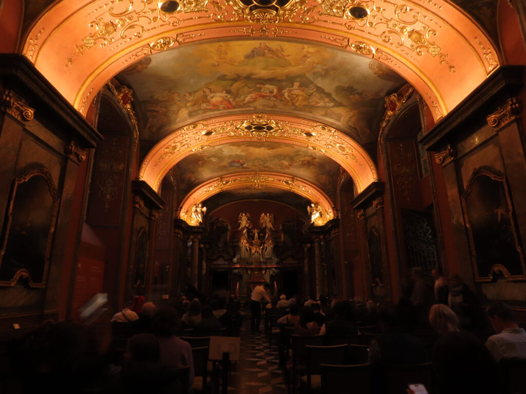 In the evening head through one of these lanes to treat yourself to a classical concert in a tiny chapel. The Mirror Chapel with its baroque interiors of gilded stucco, frescoes, mirrors and old organs is part of the Klementium, an old Jesuits’ College. An underrated place worth a visit as well. The experience of listening to soloists from the Royal Czech Orchestra is something even the cherubs on the roof seem to delight in.